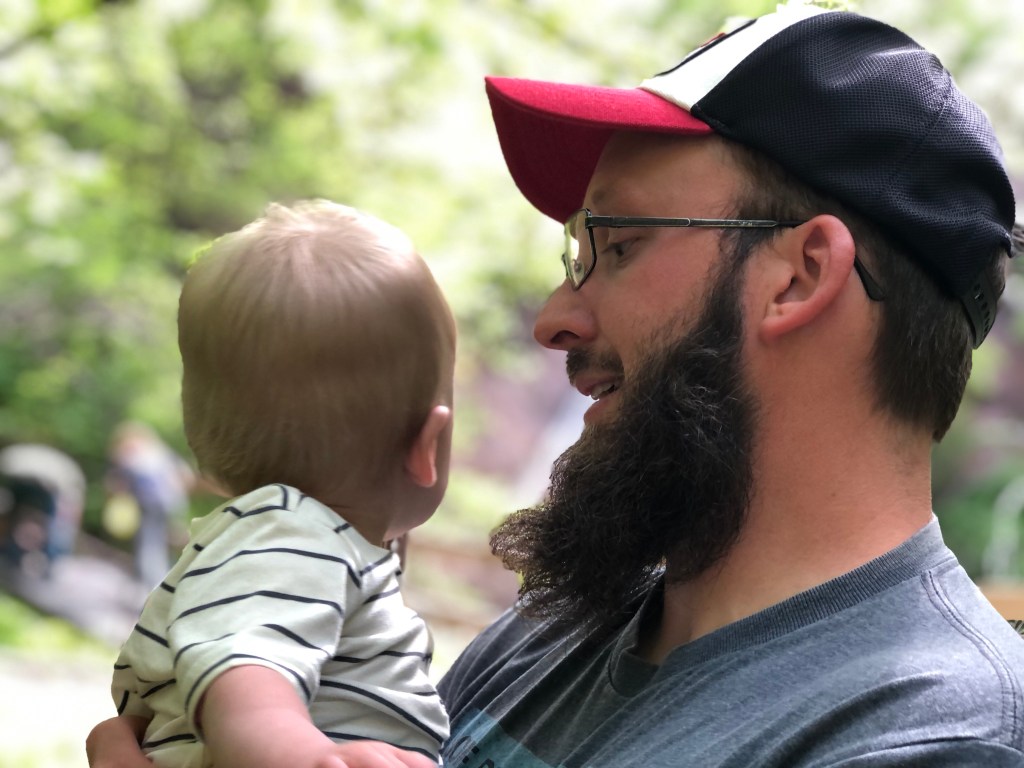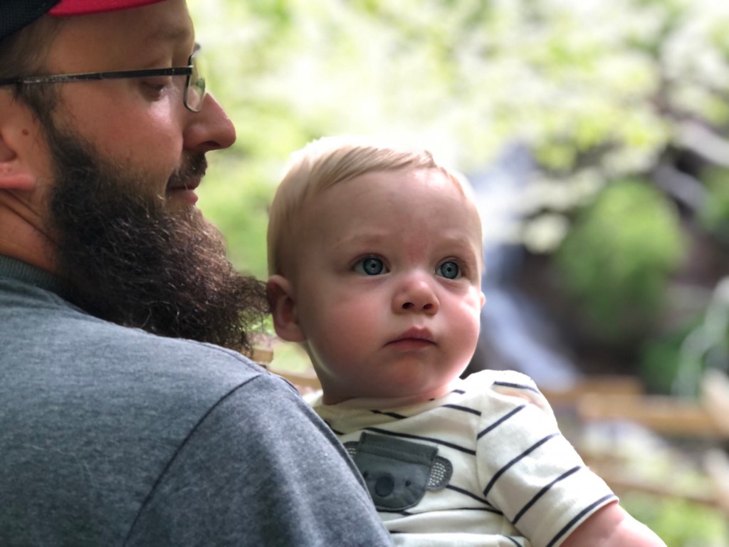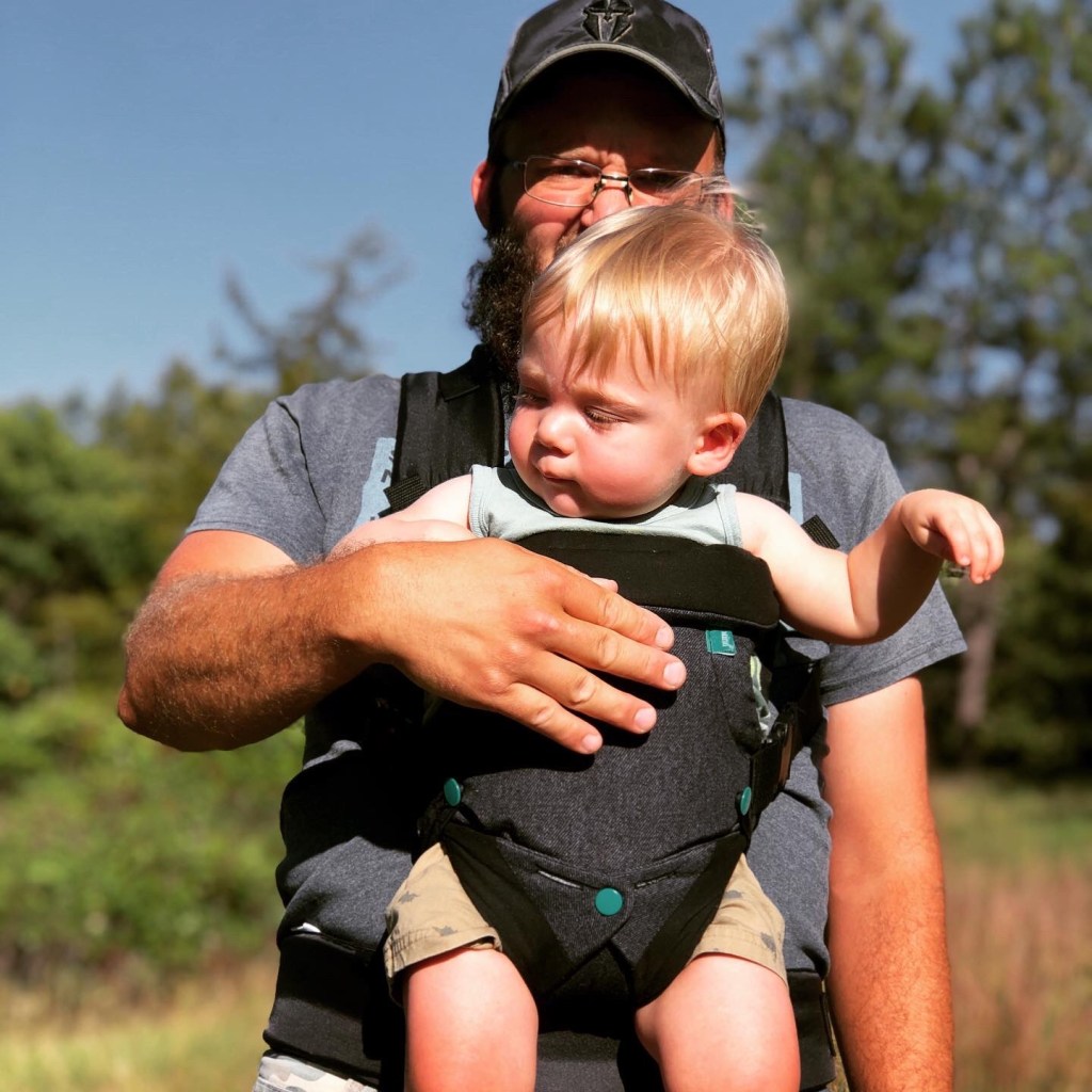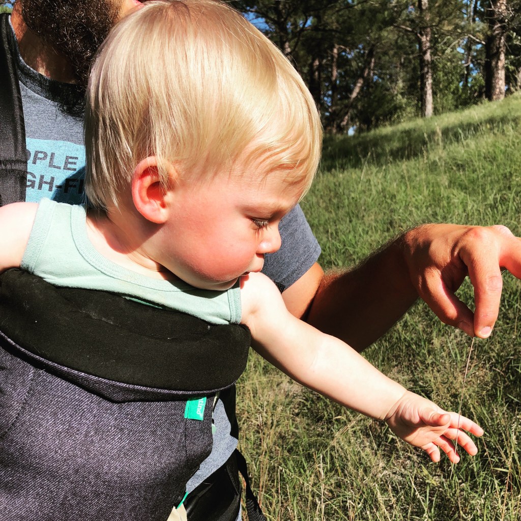 Wade did most of the heavy lifting that day—it was spur of the moment trip, so we didn’t have the carrier or even the chest harness. Hunter had a blast and wanted to grab everything; poison ivy worried me, but dad did a good job corralling him while I had the camera.
