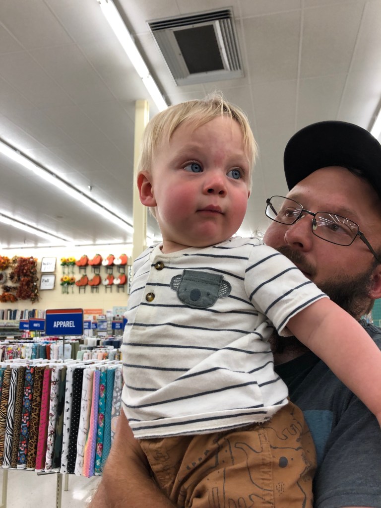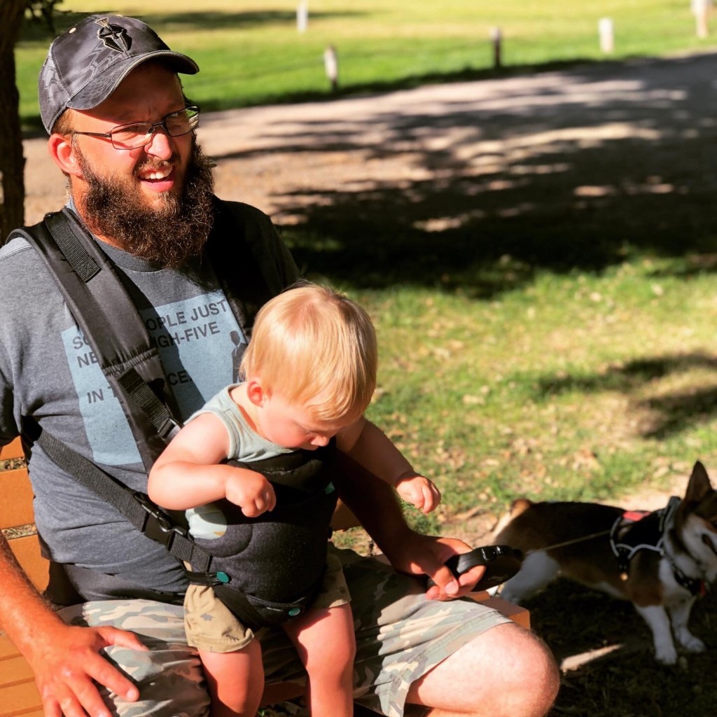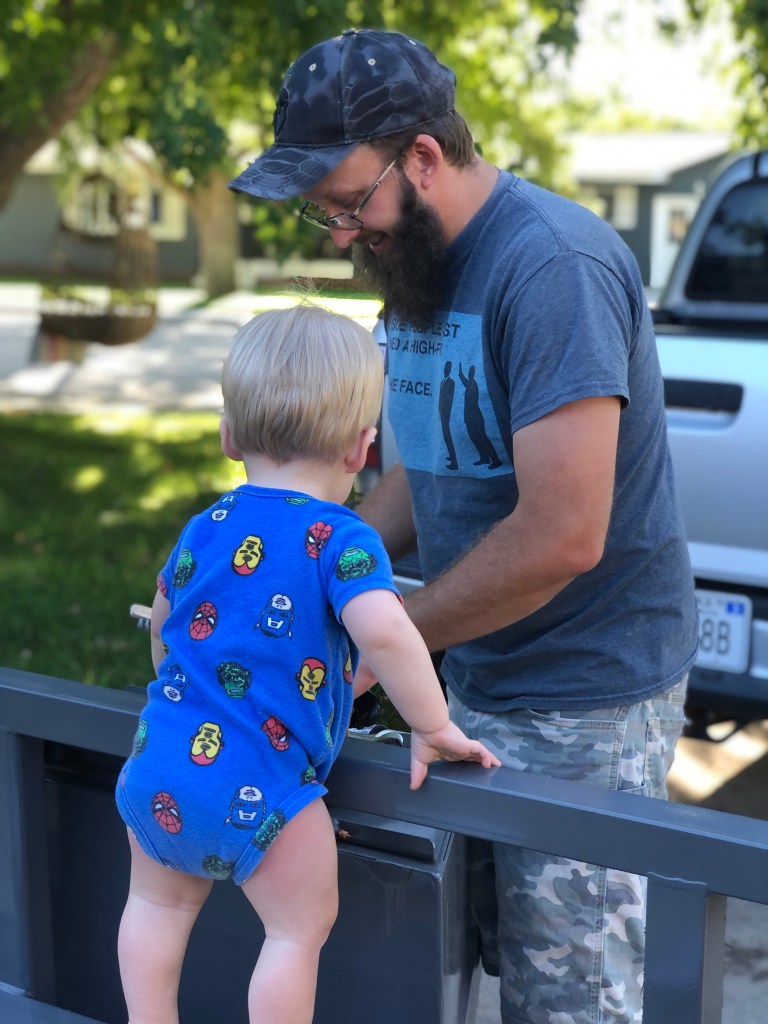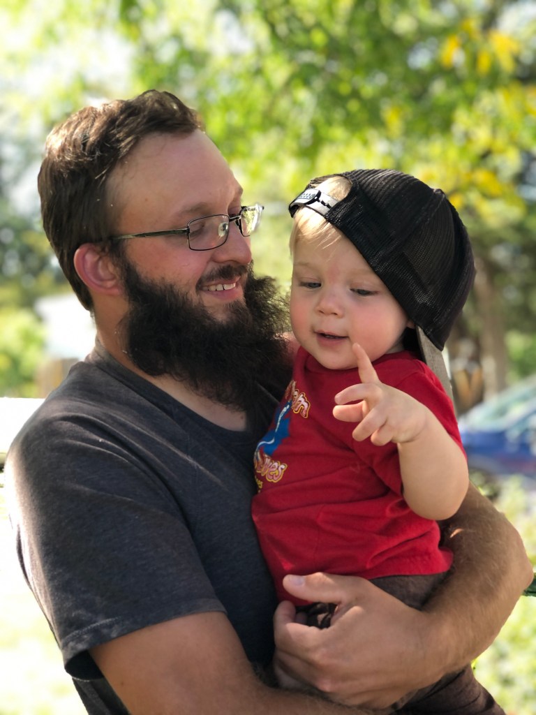 Wade did most of the heavy lifting that day—it was spur of the moment trip, so we didn’t have the carrier or even the chest harness. Hunter had a blast and wanted to grab everything; poison ivy worried me, but dad did a good job corralling him while I had the camera.