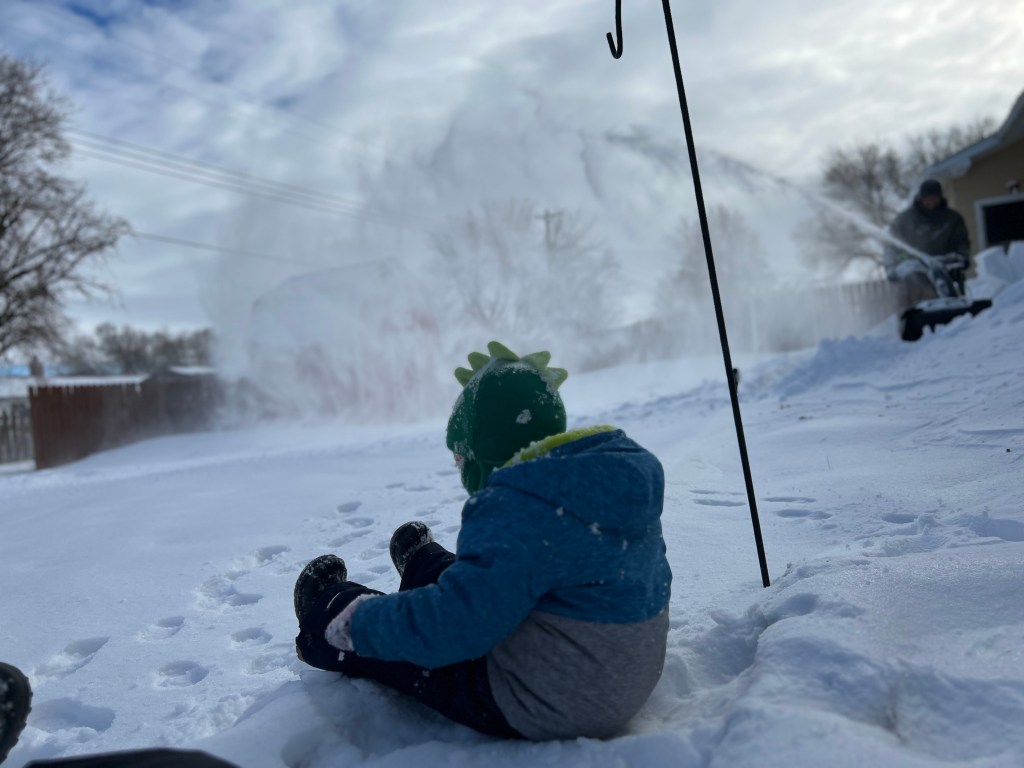 He did figure out the front door and screen door, plus how to put his snow boots on the correct feet and decided to come help mom clear snow before work instead of eating his waffle bites. Mom is just glad she heard a scraping sound and looked over to see a shovel levitating. He was in sweats, but it was much too cold for him to be out in that type of weather.
