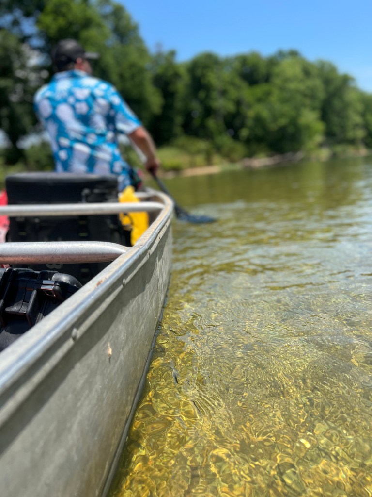 Since I do have experience with my day job with canoes both solo and tandems I would be in the back of the boat. Luckily, Wade didn’t fight me on it because again he knows I have the experience. And he knew I wanted him to just take in the river and not worry about doing a lot.